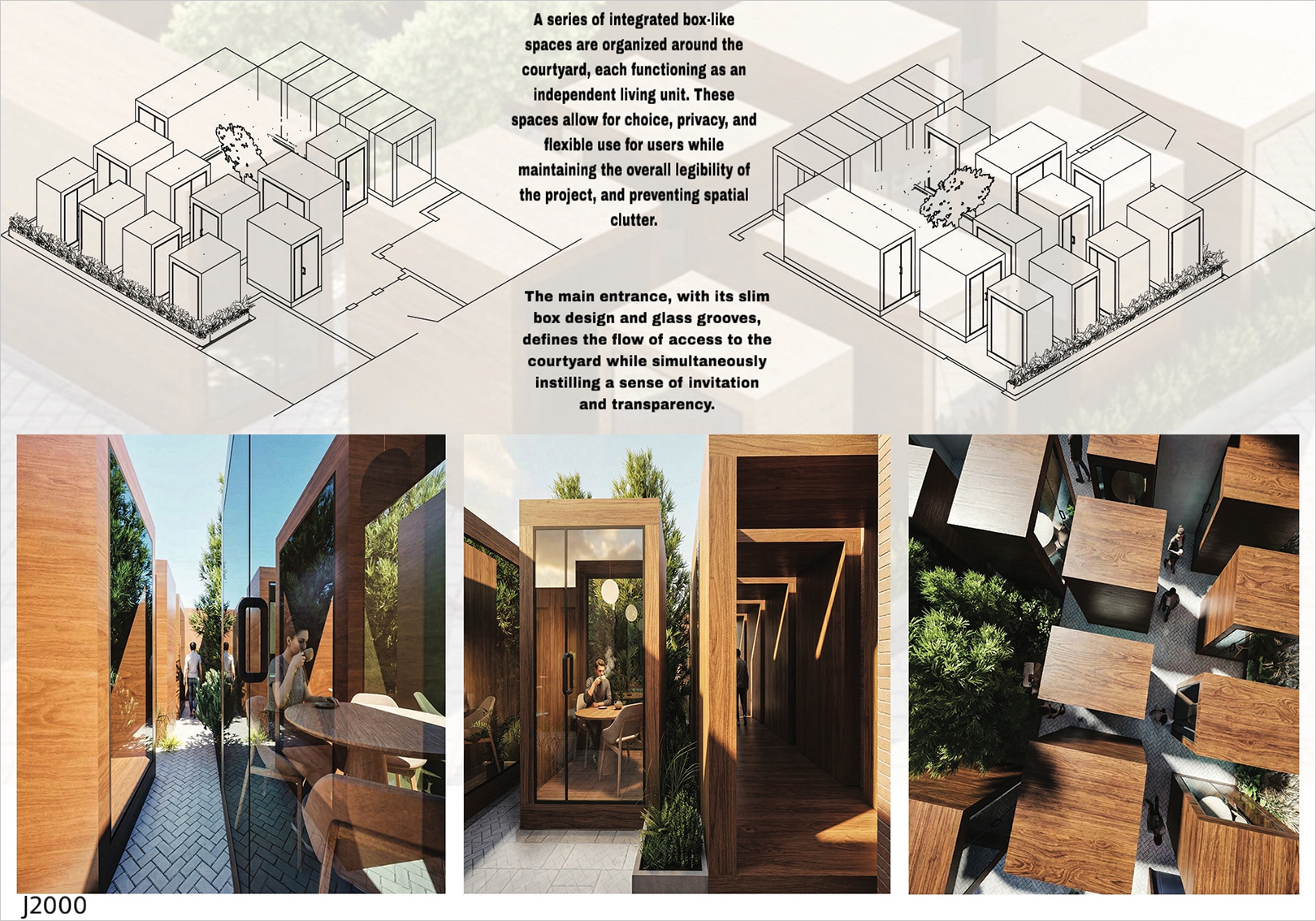پروژه برنده رتبه دوم با طراحی هوشمندانه بدنه بیرونی، از همان ابتدا، نوعی حس کنجکاوی در مخاطب ایجاد کرده و این پرسش را در ذهن او برمیانگیزد که درون بنا چه میگذرد و بدینترتیب، ارتباطی پویا میان فضای شهری و فضای داخلی برقرار میکند. زبان معماری این پروژه، یکدست و ساده بوده و از هرگونه پیچیدگی غیرضروری پرهیز کرده است. این اثر توانسته است پاسخی روشن و قطعی به خواستههای مسابقه دهد و برنامه آن را حتی فراتر از انتظارات اولیه، پیش ببرد. در همین راستا، عدم طراحی یک ساختار صلب و ثابت، به شکلگیری فضاهای انعطافپذیری انجامیده که میتوانند میزبان رویدادهای جمعی متنوعی باشند.