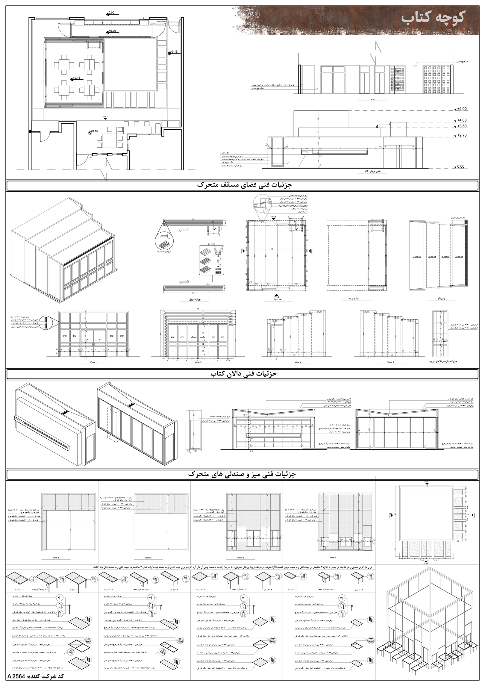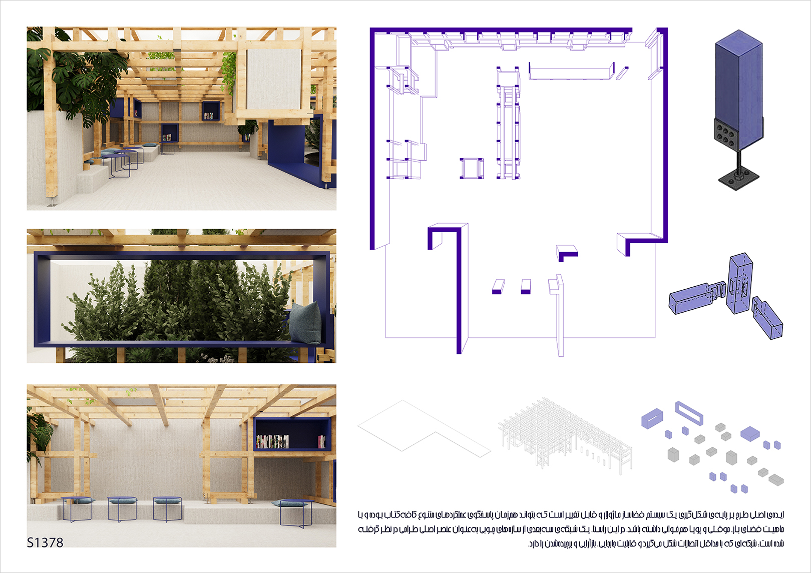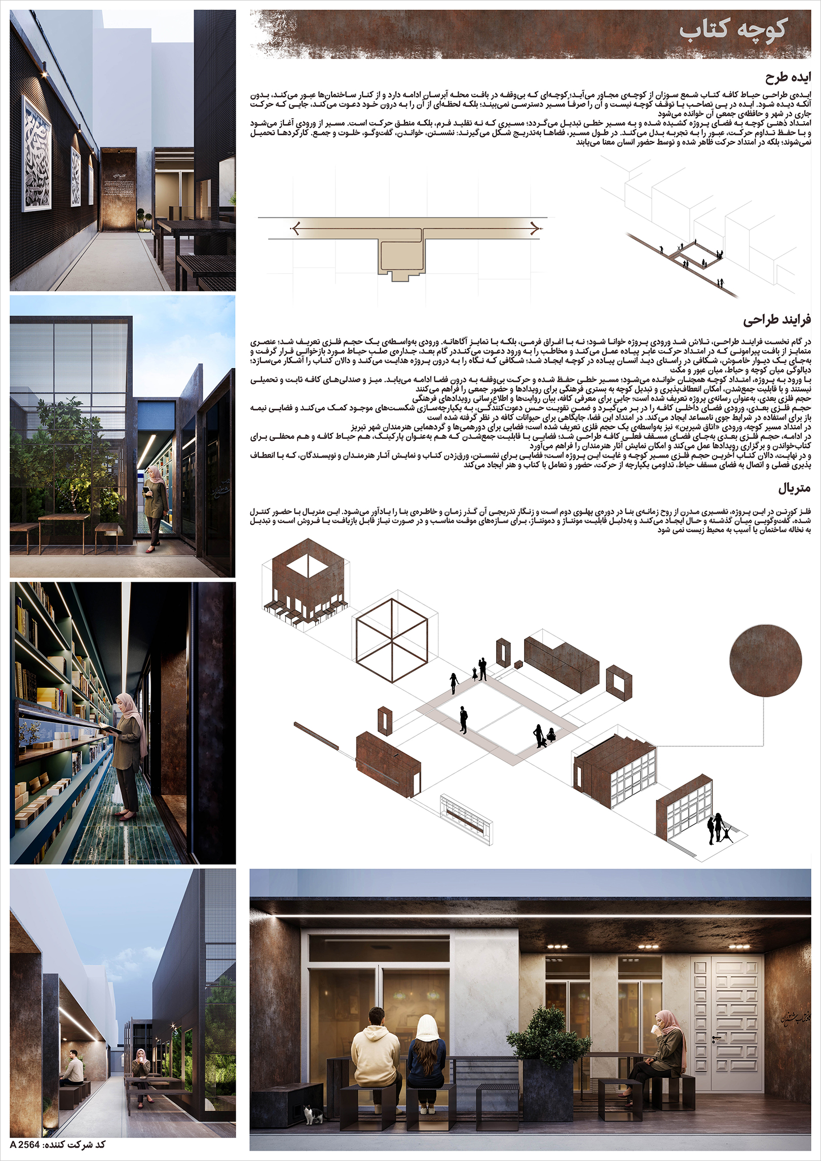 پروژه برنده رتبه سوم با دیدگاهی کاملا متفاوت وارد مسابقه شده است و طراحی آن بر ایجاد فضاهایی اختصاصی و شخصی برای مطالعه، در قالبی کیوسکمانند تمرکز دارد. اگرچه ممکن است برخی با ایده مطرحشده در آن موافق نباشند، اما ارزش این اثر در وضوح و صراحت ایده آن نهفته است. این پروژه توانسته است با یک ساختار کاملا ساده و مشخص، جایگاهی برای تجربه فردی در دل فضای عمومی پیشنهاد دهد و بدینترتیب، پرسشی تازه درباره نسبت فرد و شهر مطرح کند.